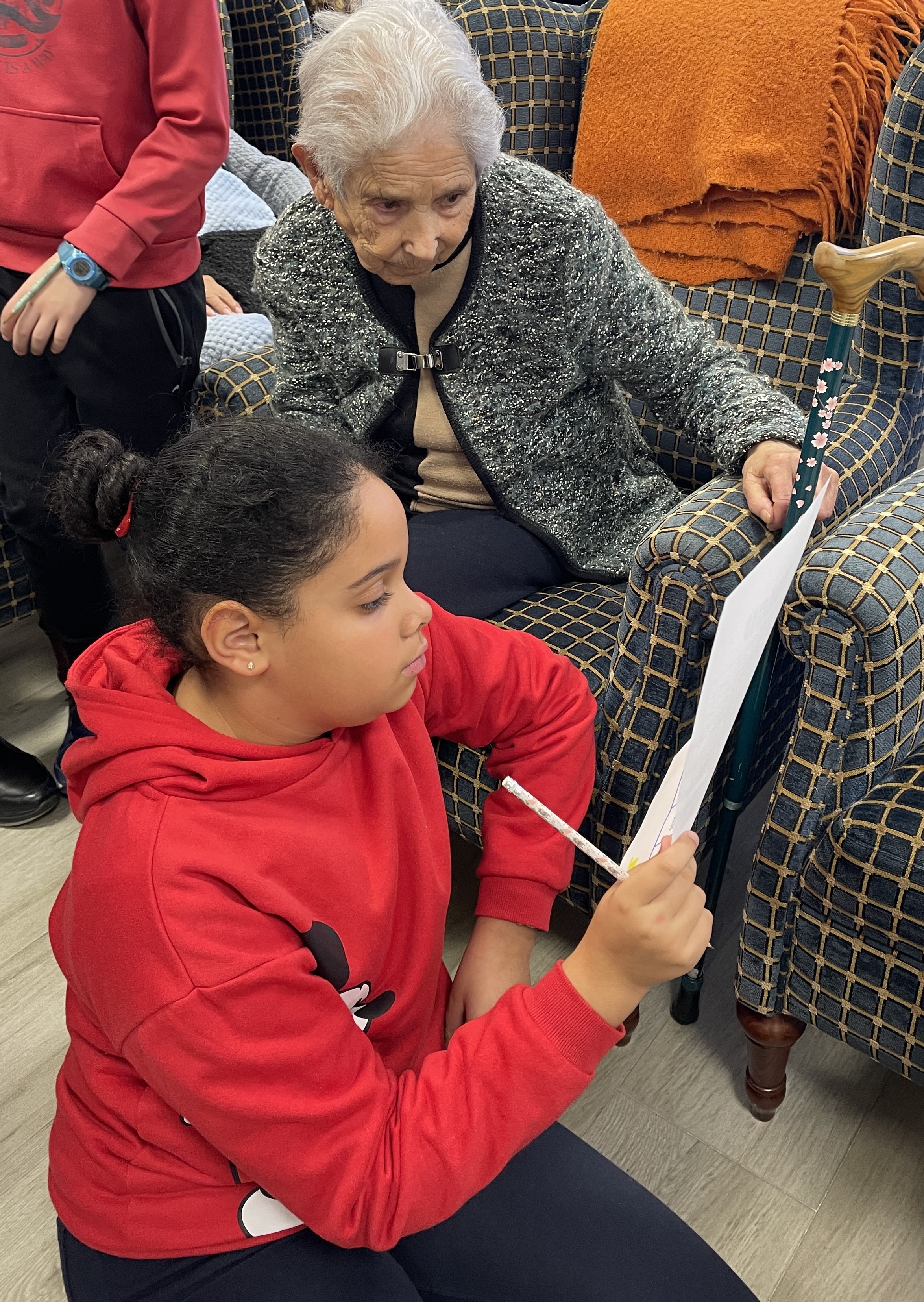 Ikasleek ilusio handiz hartu zuten parte, eta bikoteka jarri ziren adineko pertsona batekin. Zentroko erabiltzaileak oso lagunduta sentitu ziren eta eskertu egin zuten tarte berezi hau partekatu izanagatik.